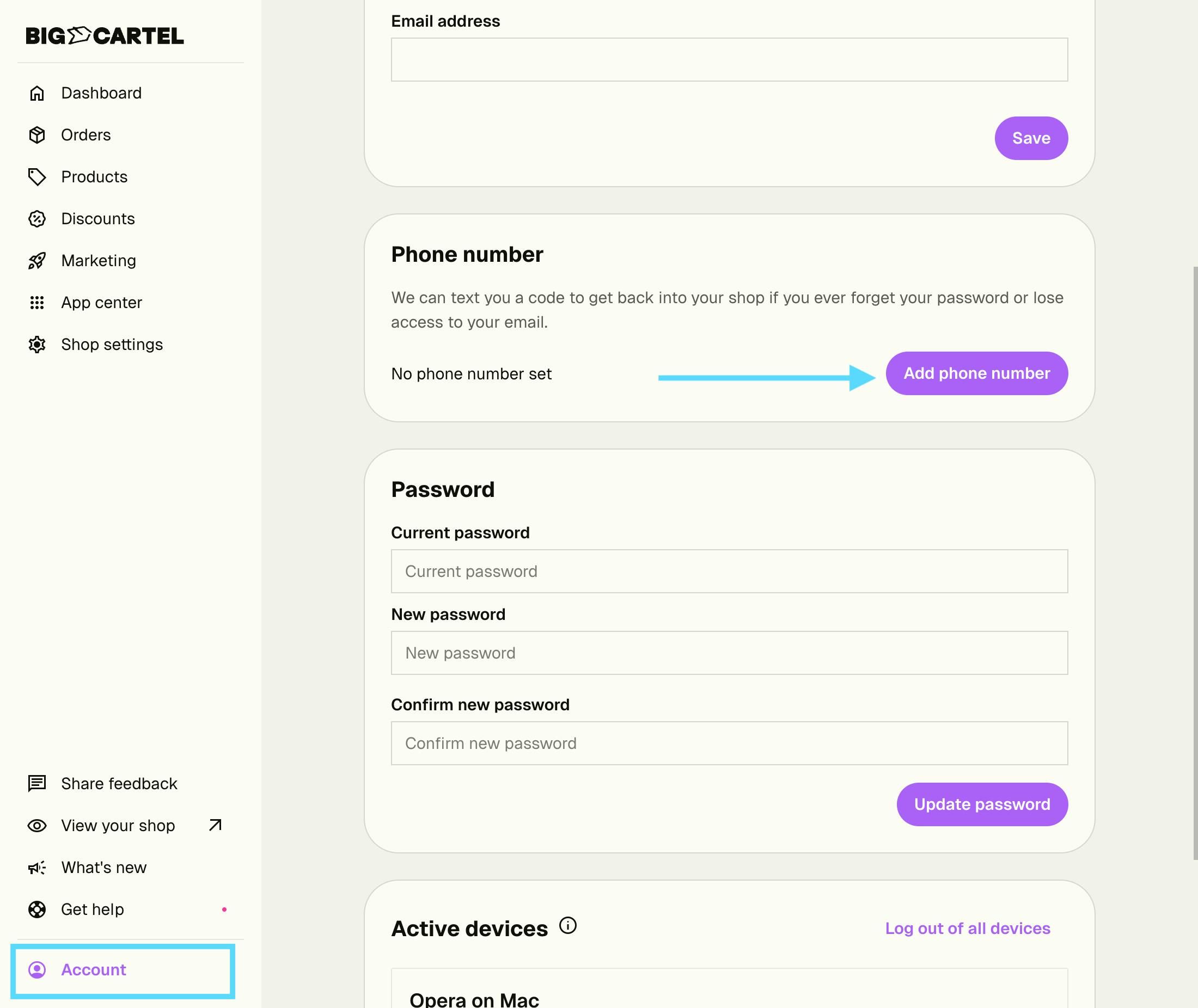 If you forget your password we can send a password reset to the email address we have on file. But if ever lose access to both your password and the contact email linked to your shop, then your phone number can be your backup plan.