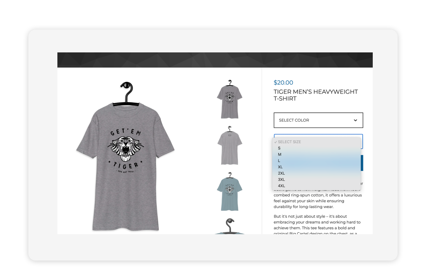 Not sure how to create or manufacture your products? Big Cartel doesn't offer order fulfillment directly, but we’ve partnered with several services that integrate with your shop to help you bring your products to life and ship them to your customers. These integrations handle everything from product creation to order fulfillment: