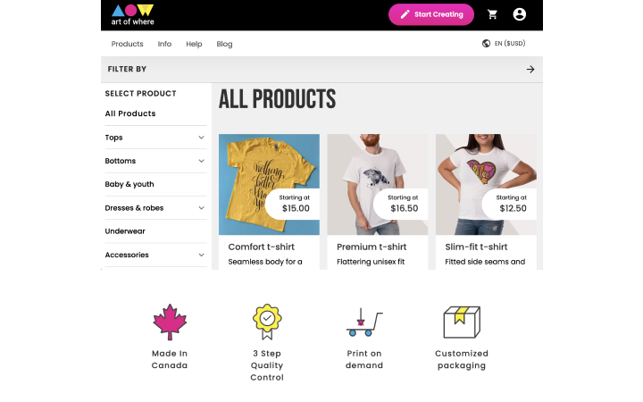 Art of Where specializes in translating your artwork onto high quality products. They print, cut, sew, and package your orders from their studios in Montreal, Canada. Their daily mantra is quality workmanship and quick turnaround.