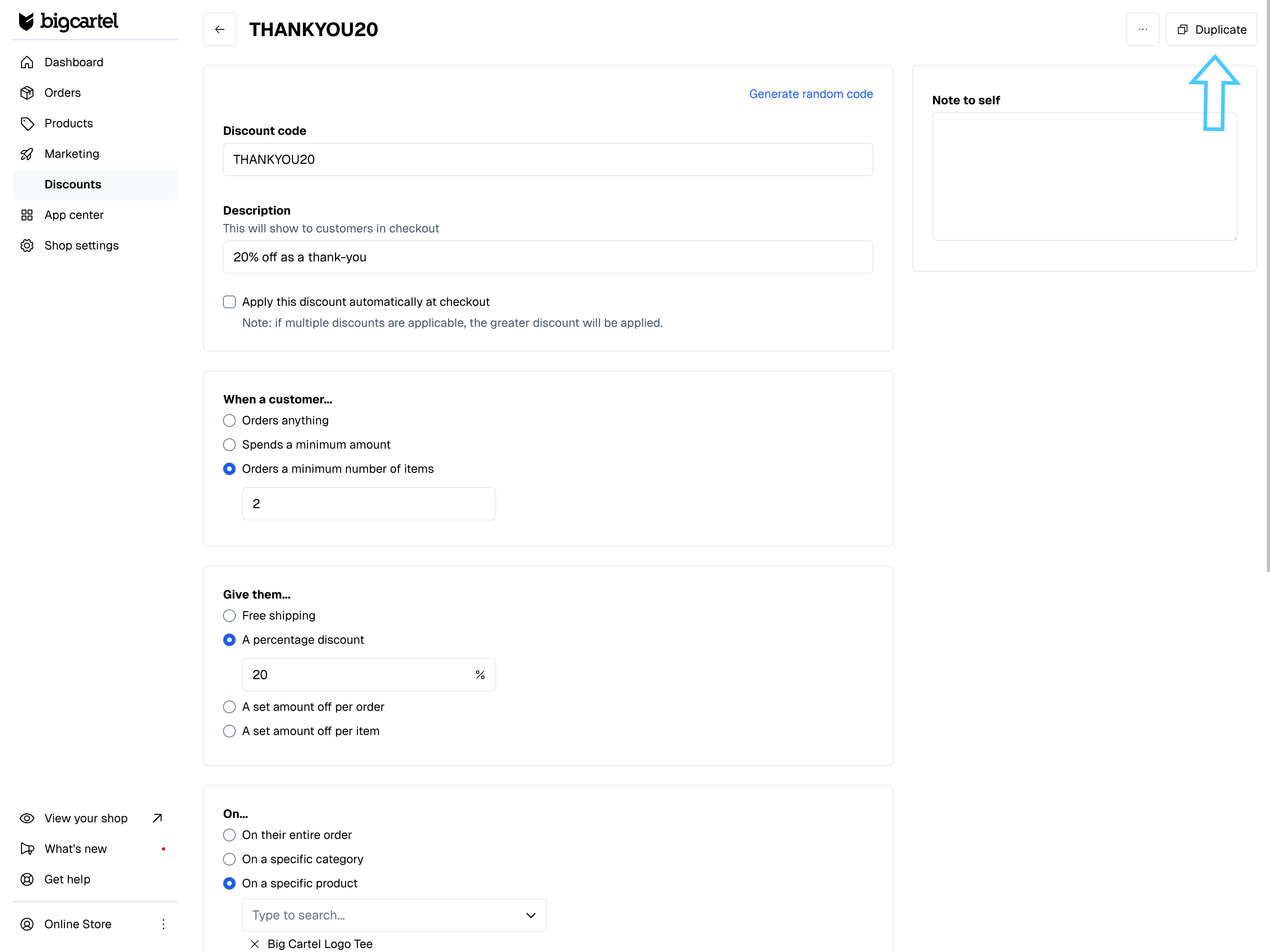 This is super handy if you’re generating a bunch of special codes for certain customers, or if you just want to replicate a promotion you've used in the past.