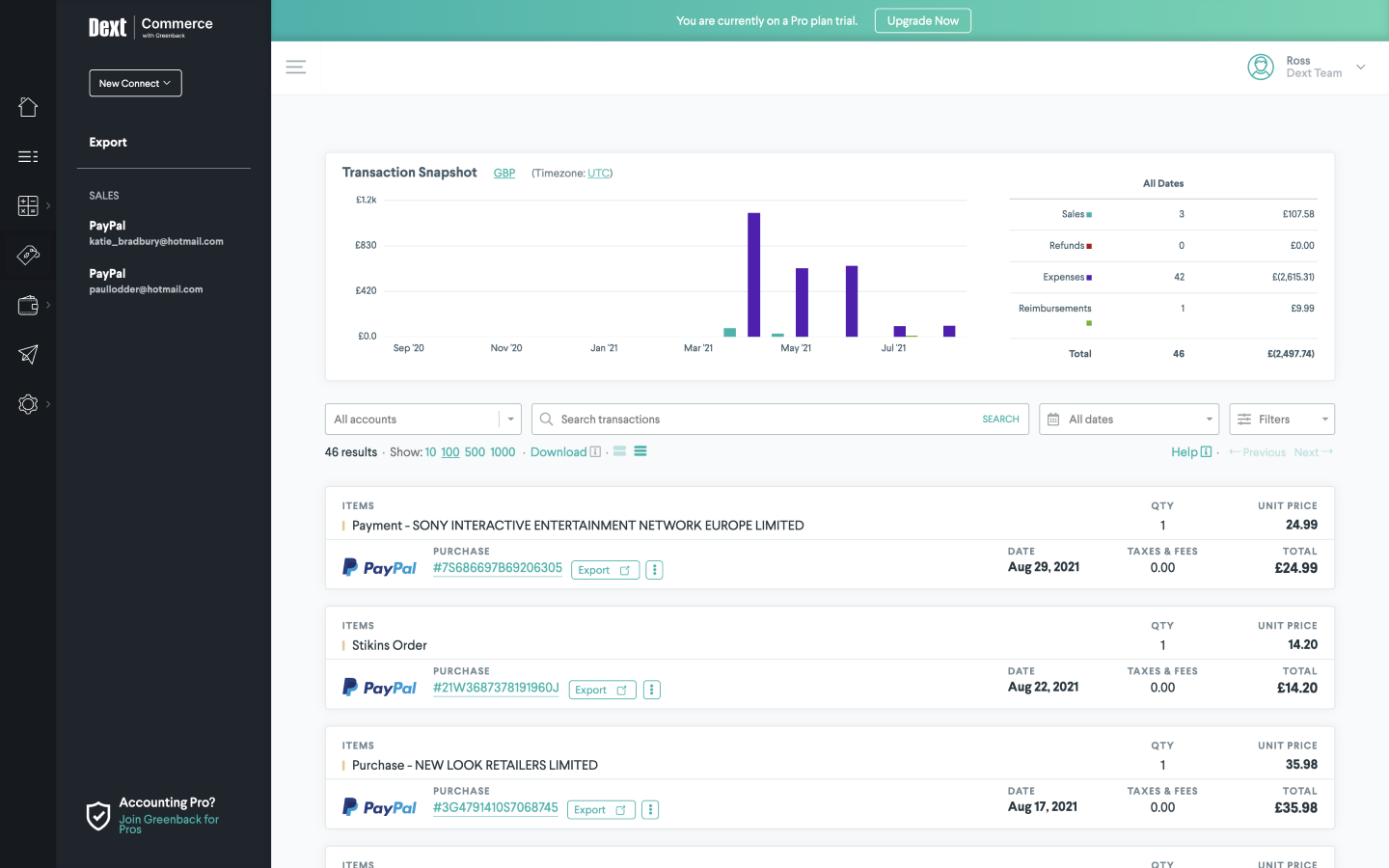- Fetch data from your online sales, fees, and expenses, which are then organized into a comprehensive, searchable timeline.