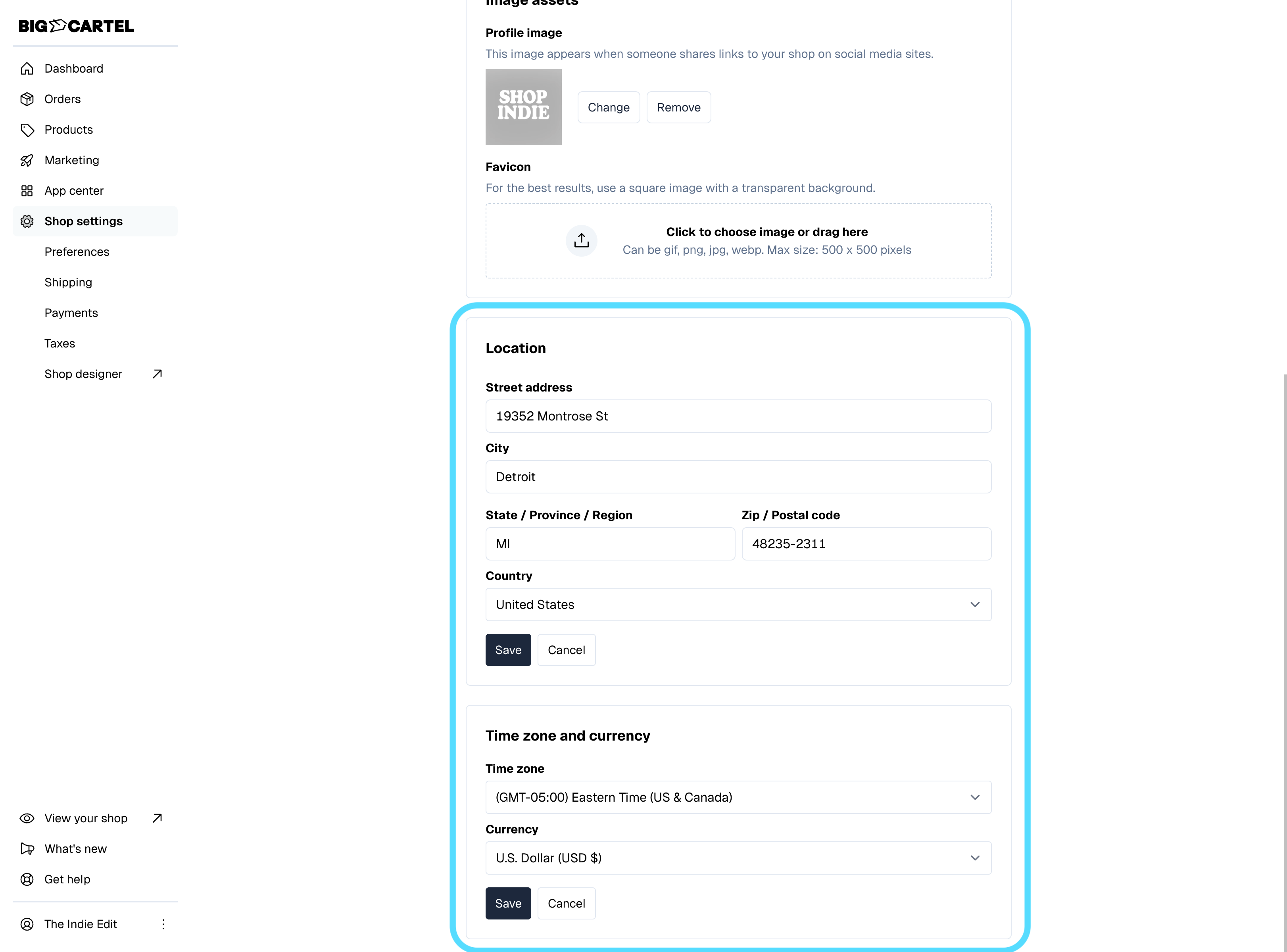 - In the Location and Time zone and currency section, click on any field to make edits, then clickย Save.