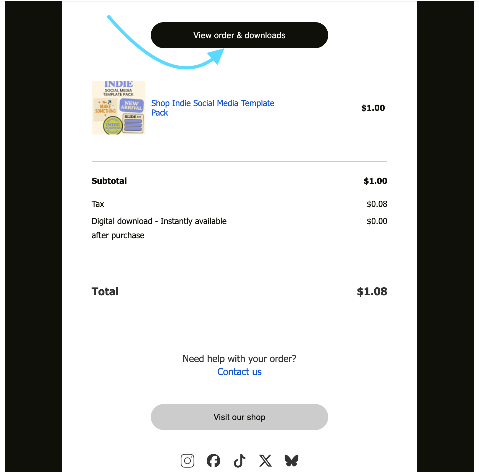 - Email Confirmation: A link to the receipt page is included in their order confirmation email, so they can easily return to download their files anytime.